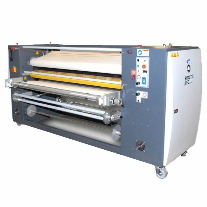 The Practix dye sublimation rotary heat model OK-10 RTR 48 is a sublimation Transfer press that makes transferring any large job quick and easy. The oil filled heated drum is 10″ (250 mm) in diameter and has 240 degrees of wrap achieving faster production speeds than most comparable models. This Press can be used for transferring on continuous or roll materials. This heat transfer machine is small and affordable offering the Practix high quality innovative engineered design using a heavy duty frame, automation, and best quality electrical and pneumatic components like all Practix heat transfer equipment, including sublimation machines, lamination machinery, and embossing equipment.